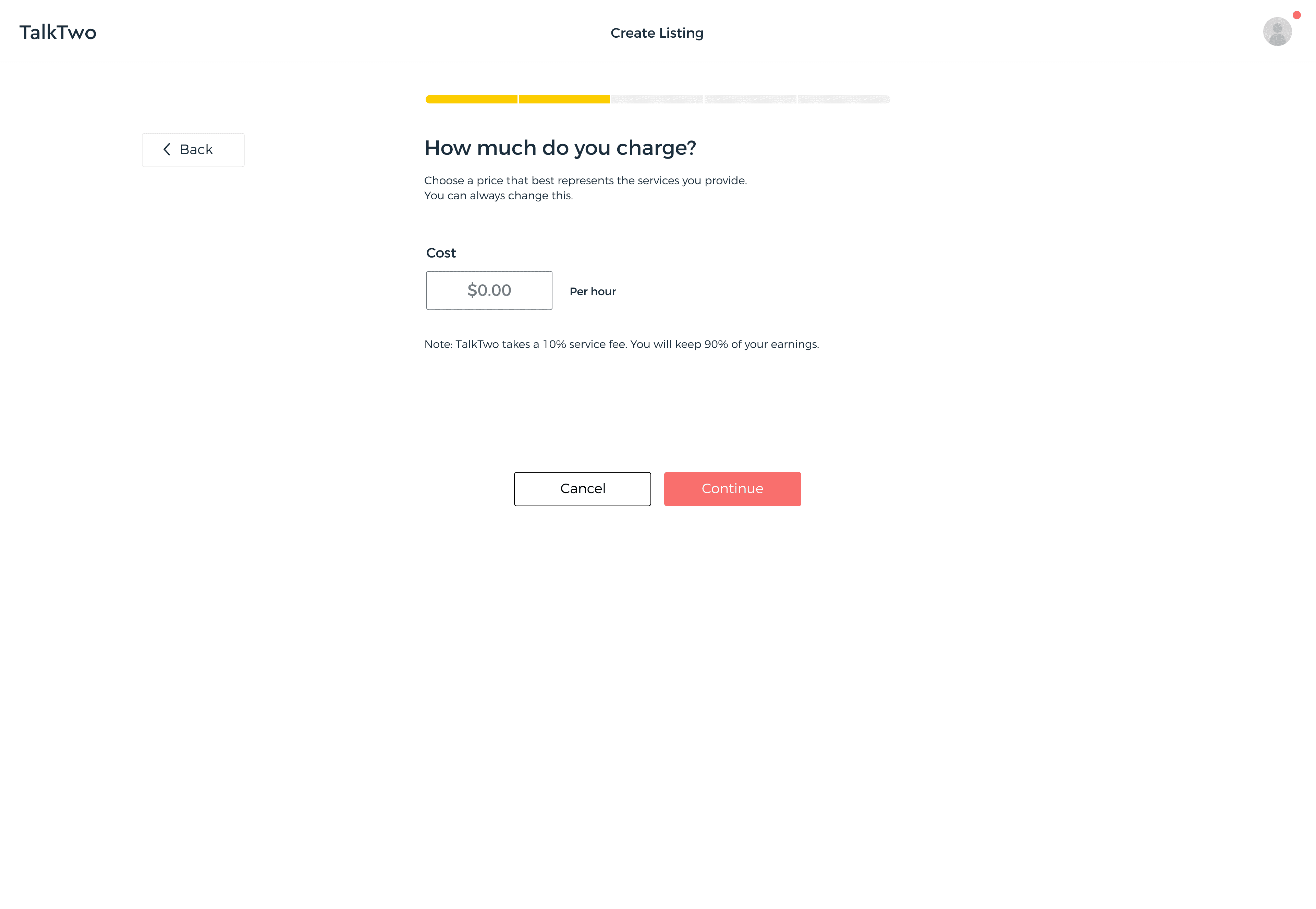 The percentage was based on the total cost amount. The issue was that because it differed due to session length and the overall provider cost, people were skeptical and providers felt like we were always taking too much because it came out of their pool rather than in addition to it.